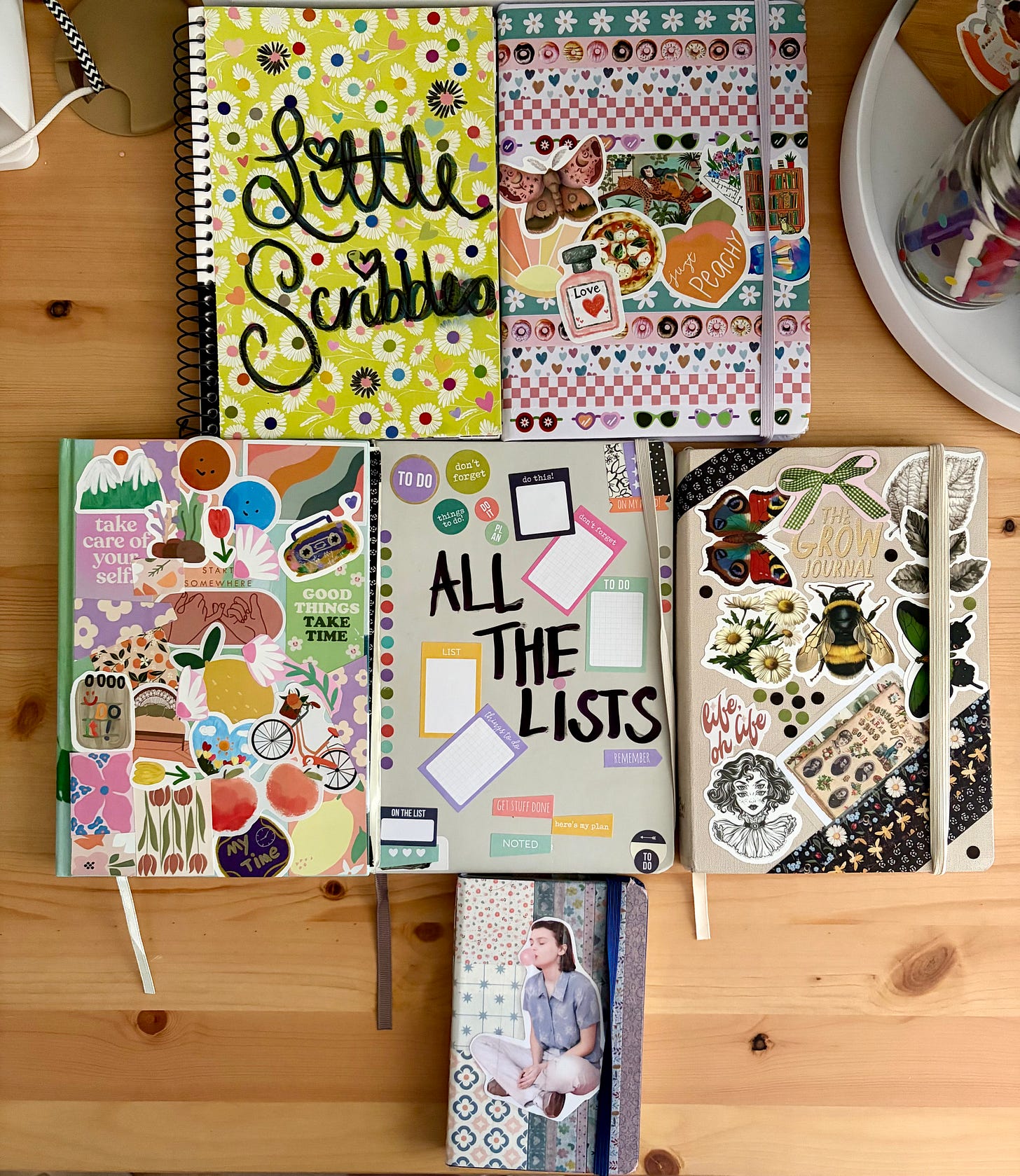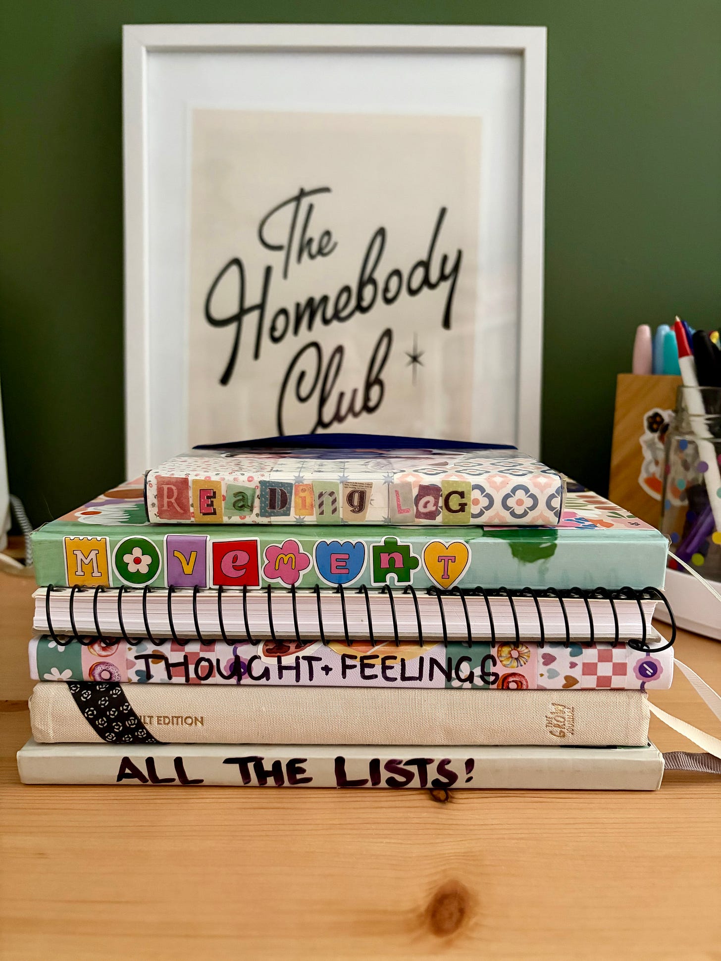 And just in case anyone was wondering- my notebooks are from Kmart, Officeworks or old ones my kids only used a few pages from. All my washie tape & most of the stickers come from Temu. Some stickers are from Kmart or OfficeWorks, too. I love Sharpies, artline 0.6 finelines, gel pens, regular old ballpoint pens & illustration markers that were Sadie’s but now live on my desk.