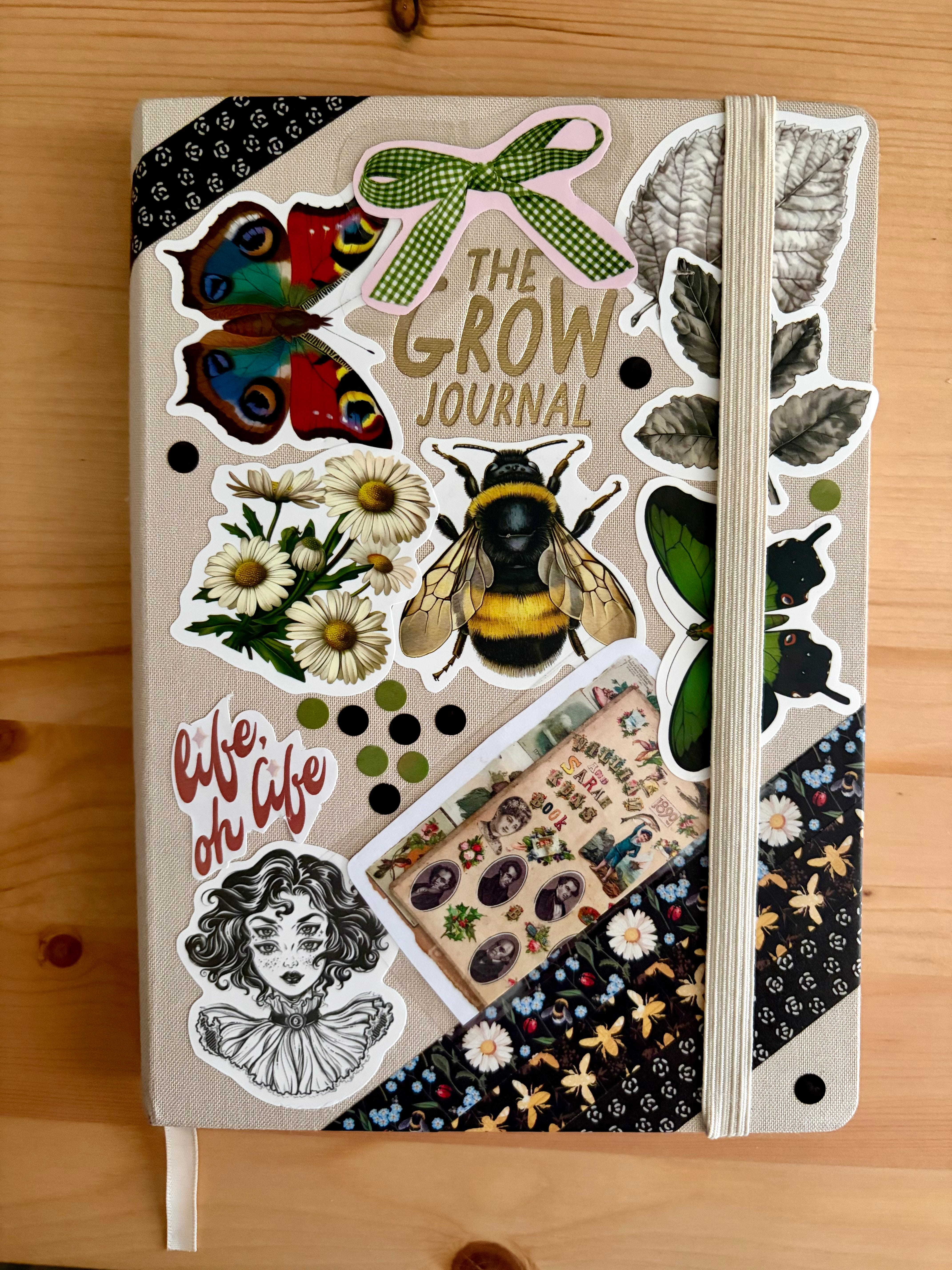 This next one is the least used in my stack. It’s my Grow Journal. I bought this back in November 2024 & since then I have used it less than 20 times. I have tried SO MANY times to do a daily gratitude paractice but nothing sticks. This is the journal I decorated on Friday night, & by doing that I am hoping it’ll encourage me to use it more. What can I say, I like a pretty notebook cover.