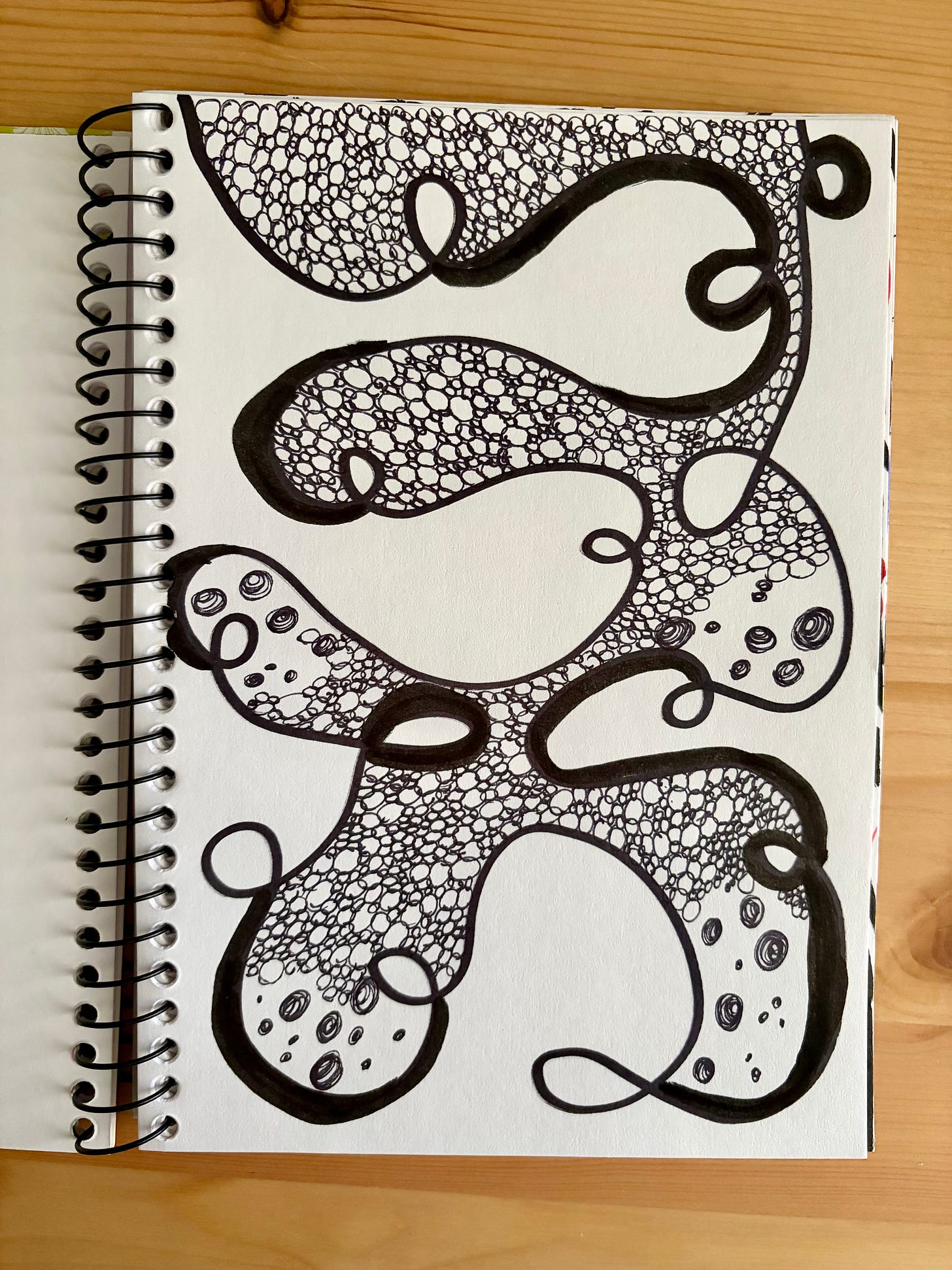 Next is my Little scribbles notebook. This one was inspired by Sisley & her “no blank pages” posts. I have ZERO artistic ability, but back when I was a stoner teenager, I spent a lot of time just doodling on paper when I was high. I do the same thing now, except I am not high. I find it really helpful to do when my brain is running away with too many thoughts. Sometimes I’ll have music, a podcast or an audiobook playing, but mostly I scribble in silence.