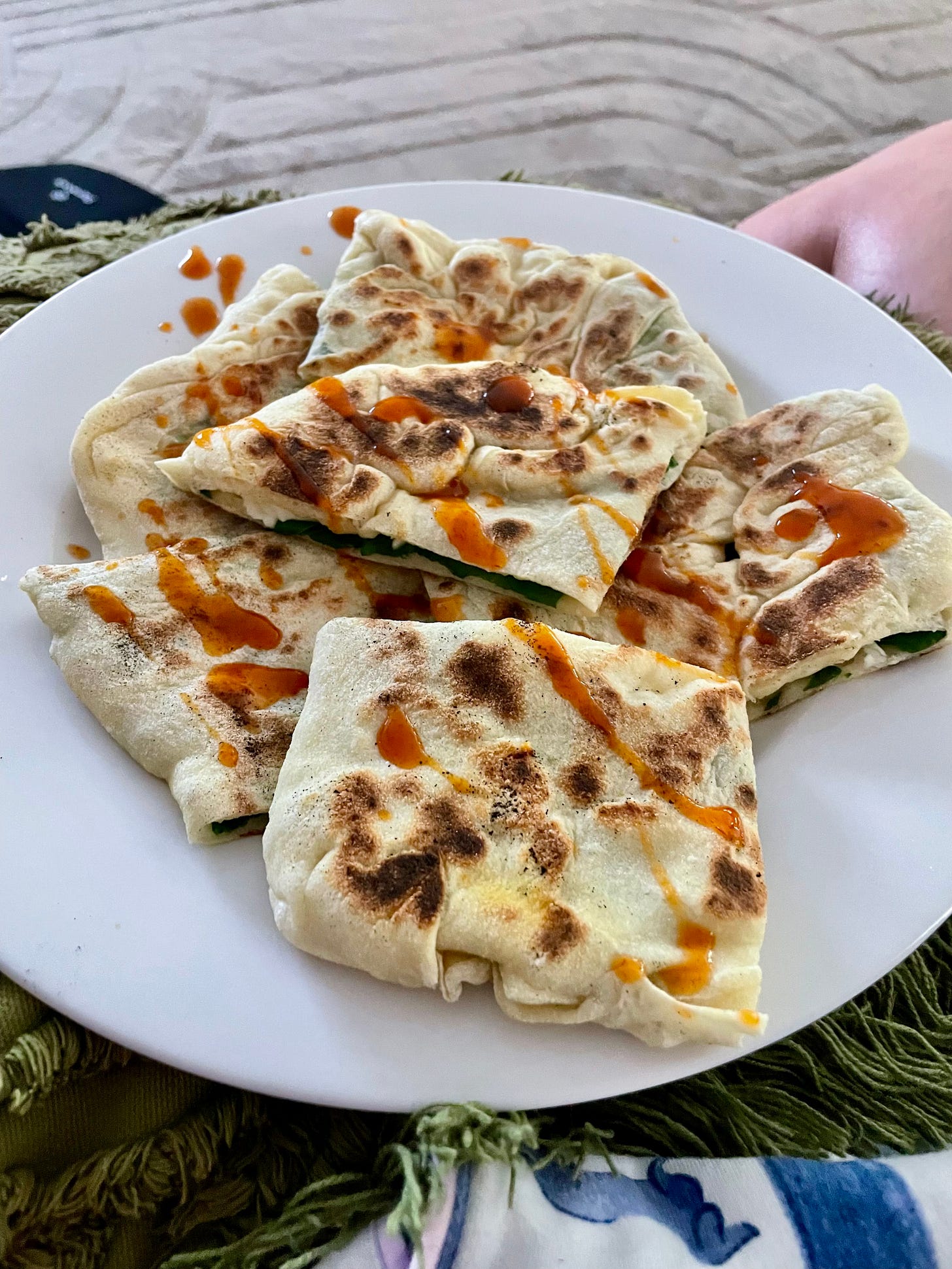 Gozleme Friday’s is our new thing. I have mine with spinach, haloumi & Cholula hot sauce.