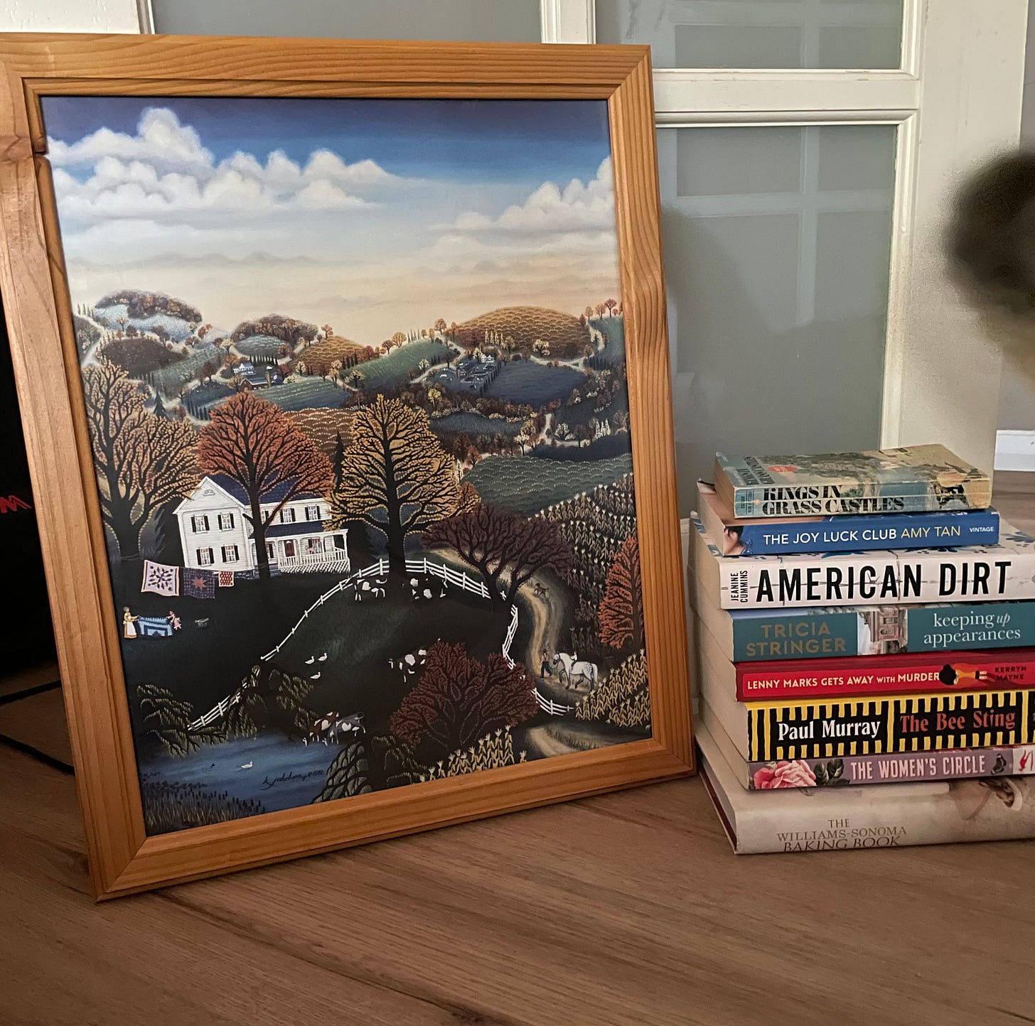 On Sunday, Sadie & I went op-shopping. She found nothing, but I got this cute print & a stack of books. Sadie asked me why I was buying MORE books when I already have so many. I have no real answer except that being surrounded by books makes me really happy.